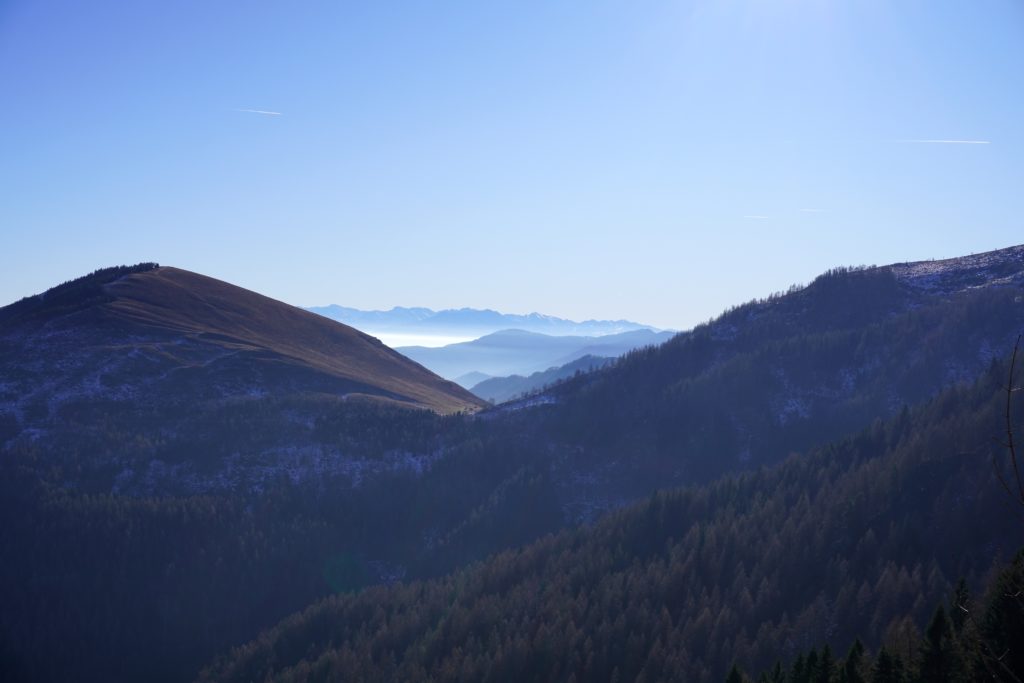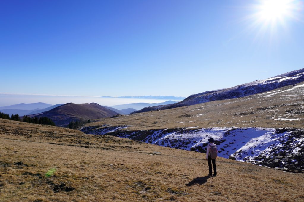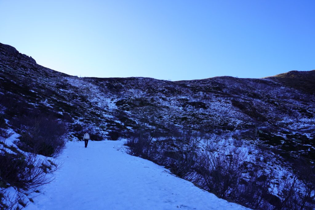 Pian Munèという地球温暖化でなければ1月はスキー場であるはずの高原の山小屋からハイキングスタート。