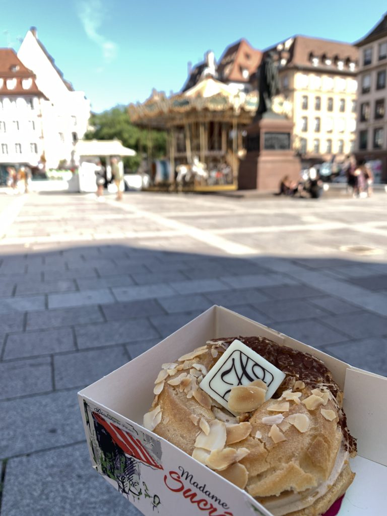 広場でパリブレストを食べる。めっちゃ美味い。ここは確実にフランスだわ。