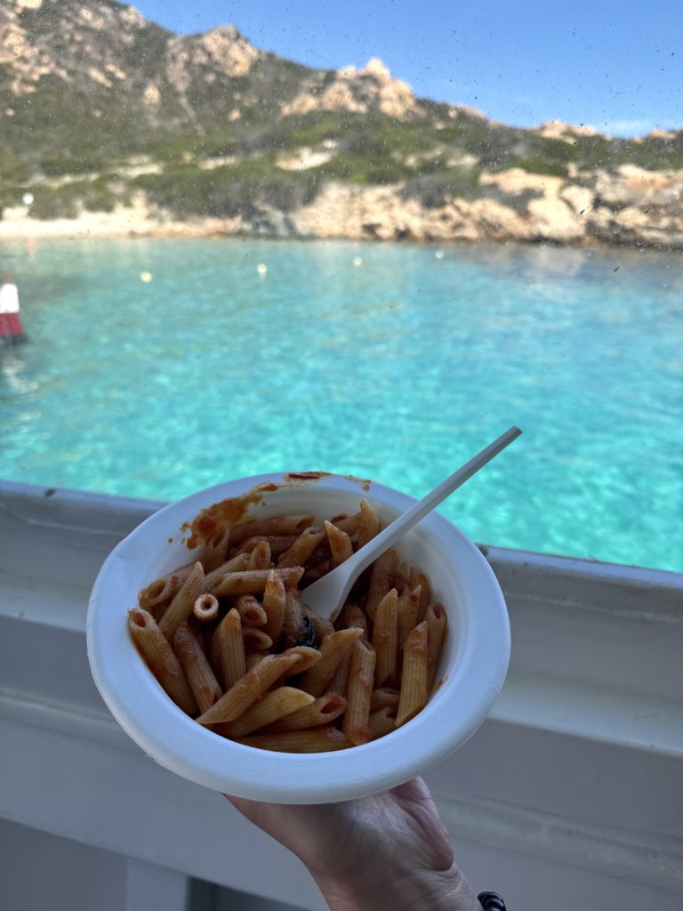 昼頃にランチが配られた。小さな船だけど厨房があってシンプルなトマトパスタを作ってくれた。実にシンプルなのだけど美味い。イタリアはどう転んでもイタリア。ご飯にハズレなし。