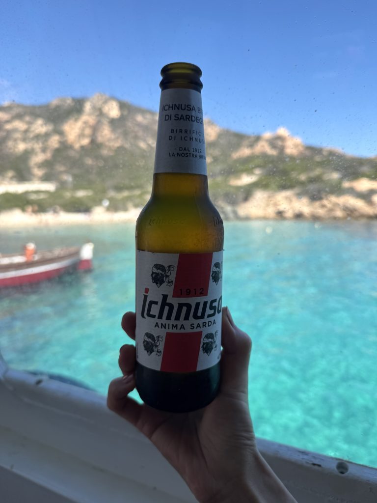 サルデーニャのビールのイクヌーサは日本で言えば沖縄のオリオンビールみたいなもんだろうけど、オリオンビールよりも有名度は全国区でトリノでもよく飲んだ。ラベルを気にしたことが無かったけど、サルデーニャの旗なのね。